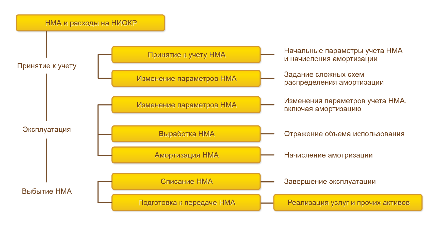 Общая схема документооборота, отражающая движение нематериальных активов с момента ввода в эксплуатацию до выбытия, представлена ниже: