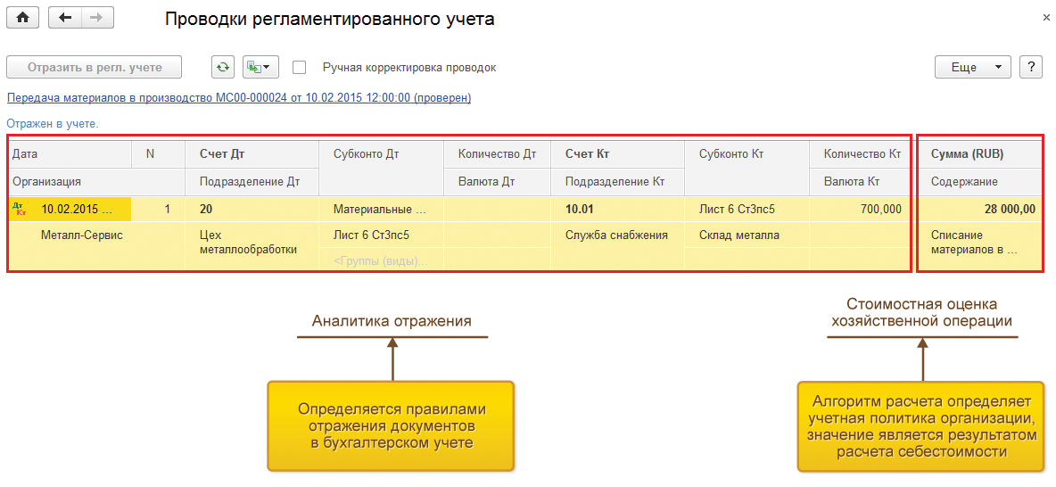 Оба механизма могут работать одновременно, позволяя получать часть проводок по данным оперативного учета, а часть трансляцией операций из регламентированного учета.